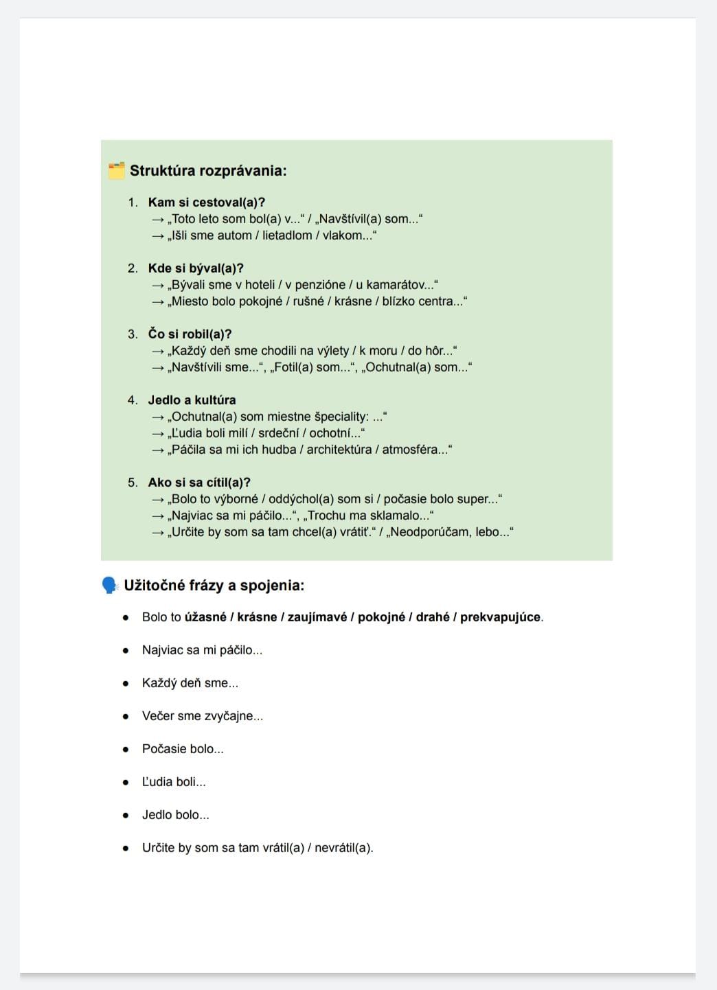 Example: A learner says: “Help me learn Slovak so I can connect with my family and explain things like my last trip to Georgia.” → The teacher creates a module with storytelling vocabulary, level-appropriate grammar, and tasks focused on asking and answering questions naturally.